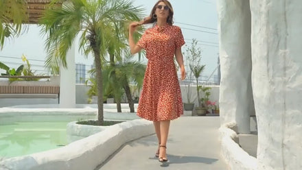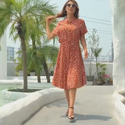 Denne kjole til kvinder er designet med korte ærmer, justerbar talje og et print. Modellen har en afslappet pasform og kan anvendes i forskellige hverdagssituationer.