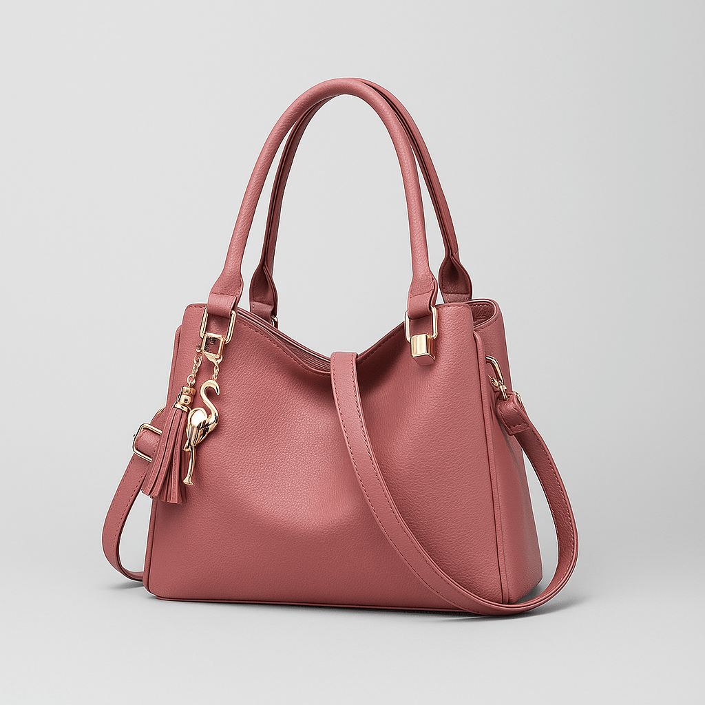 Florena-håndtasken kombinerer et tidløst udtryk med moderne elementer. De dekorative vedhæng og kvaster giver tasken et elegant præg, mens den rummelige indretning gør den praktisk til både hverdag og særlige anledninger.