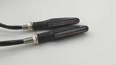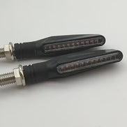 Et LED blinklys til motorcykler med fleksibelt design. Kan tilsluttes til køretøjets elektriske system og anvendes som retningsindikator.