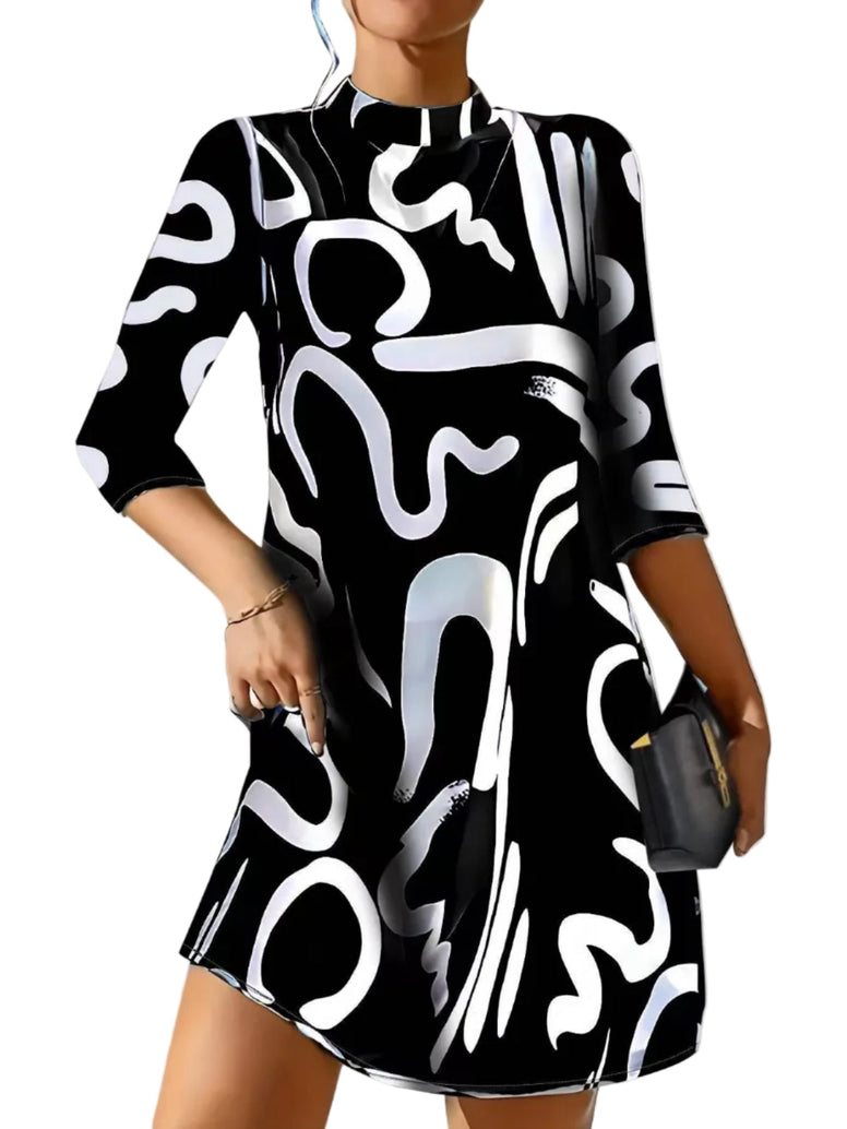 Minikjole med rund hals og 3/4 ærmer – kjole til hverdag og fritid – Elvara