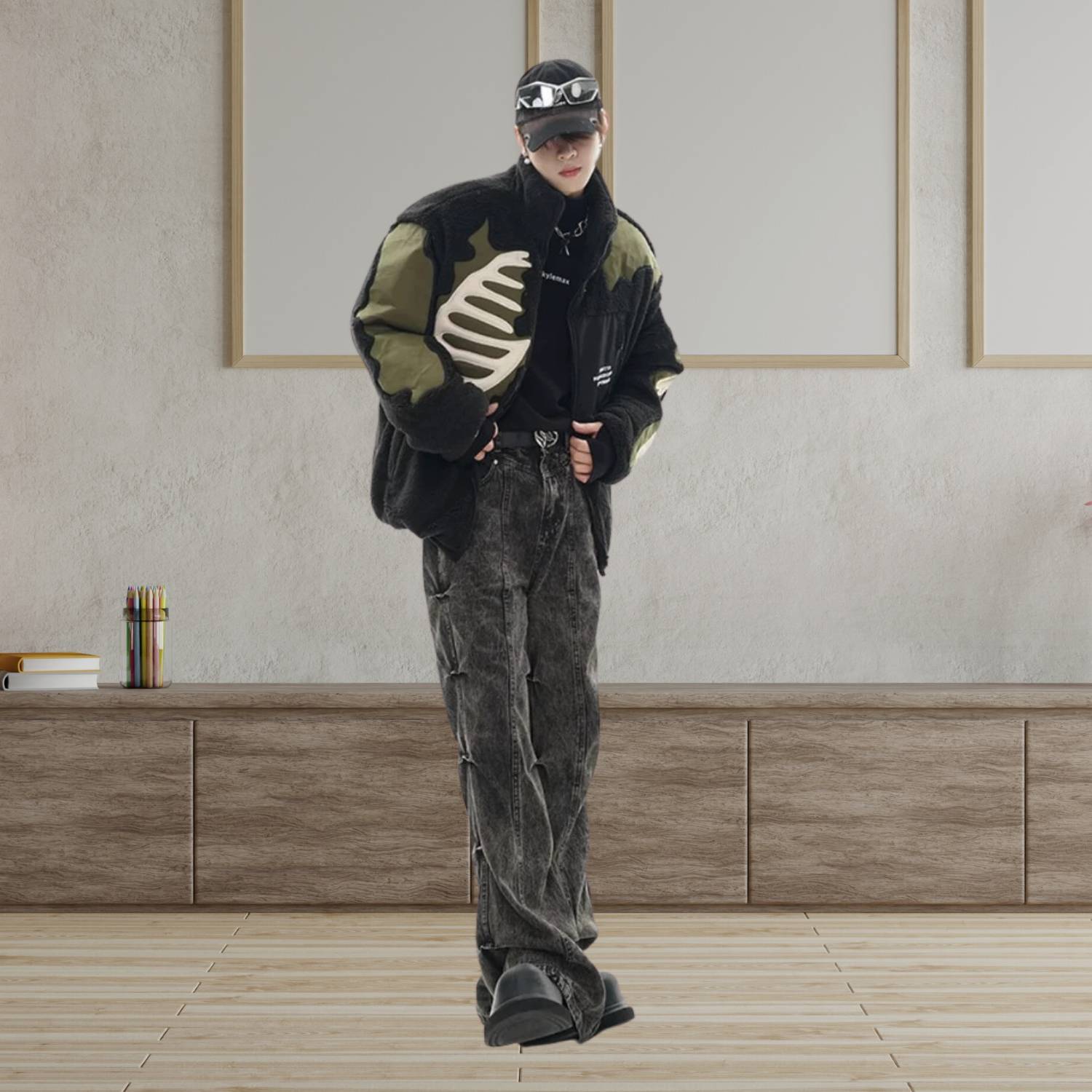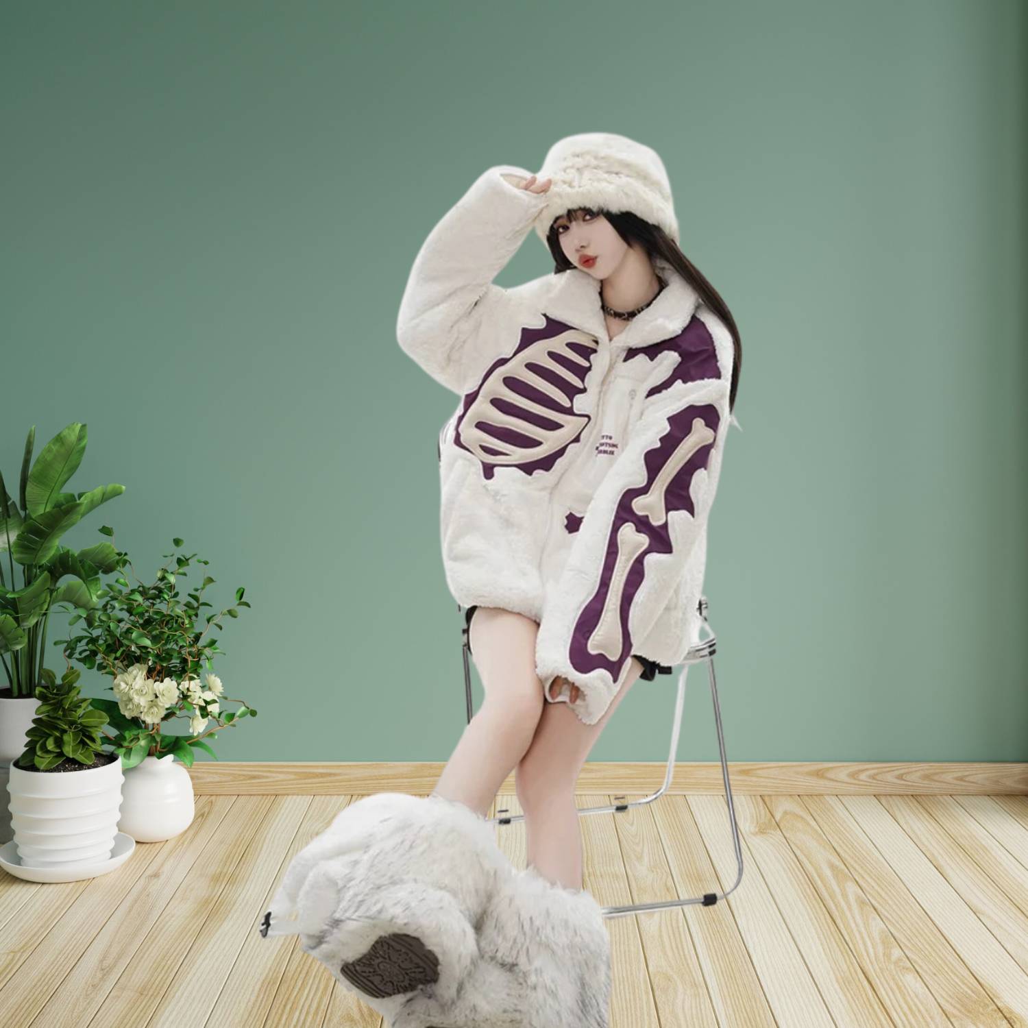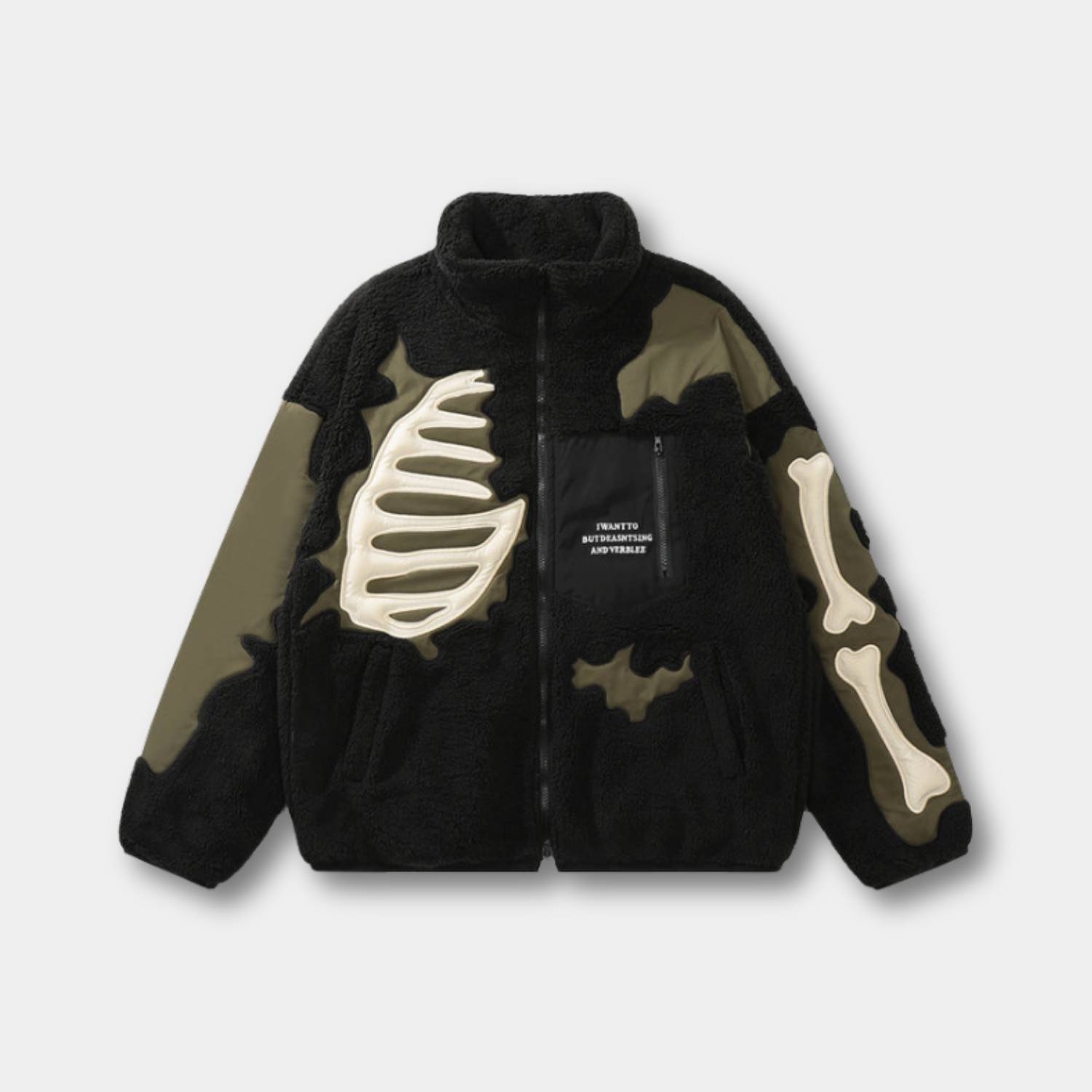 Skab et stilmæssigt statement med SkullFlex Fleece Jacket. Jakken kombinerer streetwear med et unikt skeletdesign og kontrastdetaljer, hvilket gør den til et iøjnefaldende valg for alle, der elsker edgy og trendy mode.
